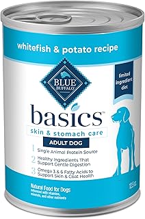 Blue Buffalo Basics Grain-Free Adult Wet Dog Food, Skin & Stomach Care, Limited Ingredient Diet, Whitefish Recipe, 12.5-oz. Can, 12 Count