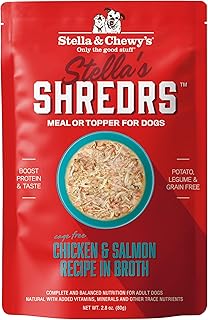 Stella & Chewy's Cage Free Chicken & Salmon Shredrs - Premium Dog Food Pouches - Freeze Dried Raw Nutrition in Broth - Perfect for Picky Eaters- 12 Pa
