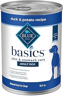 Blue Buffalo Basics Adult Grain-Free Wet Dog Food for Skin & Stomach Care, Limited Ingredient Diet, Duck & Potato Recipe, 12.5-oz. Cans (12 Count)