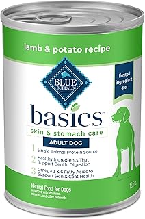 Blue Buffalo Basics Grain-Free Adult Wet Dog Food, Skin & Stomach Care, Limited Ingredient Diet, Lamb Recipe, 12.5-oz. Can, 12 Count