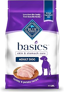 Blue Buffalo Basics Adult Dry Dog Food, Skin & Stomach Care, Limited Ingredient Diet for Dogs, Turkey Recipe, 11-lb. Bag