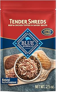 Blue Buffalo Tender Shreds Tasty Chicken Topper and Beef & Chicken Topper Natural Dog Food Complement, 2.5-oz. Pouch, 12-Count Variety Pack